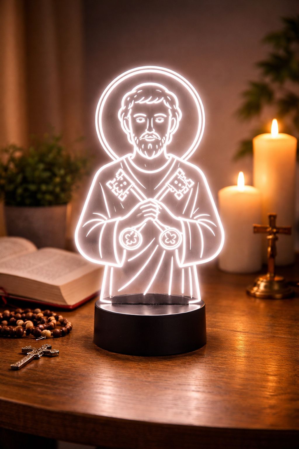 A Luminária Decorativa LED 3D São Pedro é uma peça especial que une fé, delicadeza e modernidade. Ideal para ambientes religiosos, quartos, salas, oratórios, igrejas, escritórios ou como um presente cheio de significado, ela transmite paz, proteção e espiritualidade através de um design encantador e iluminado.